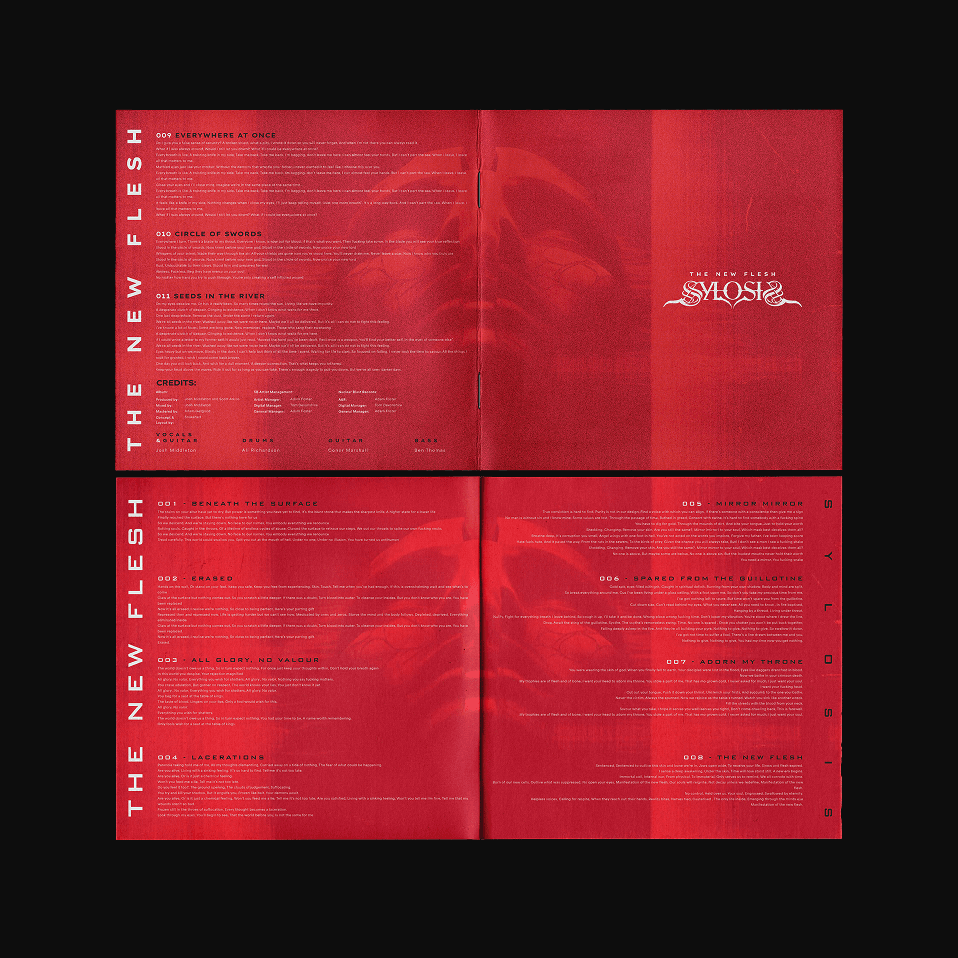 Typography & image placement across lyric booklet, LP & CD packaging layout